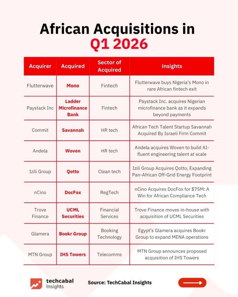 Notable moves include Flutterwave acquiring Mono and Moniepoint’s aggressive expansion into Kenya via Sumac Microfinance Bank.