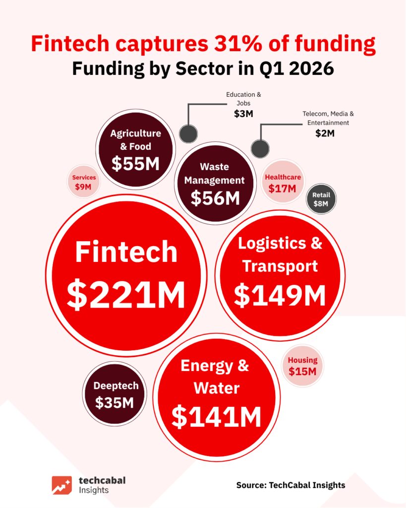 Fintech attracted $221M, while the Energy & Water sector secured $141M to solve the continent’s power gaps.