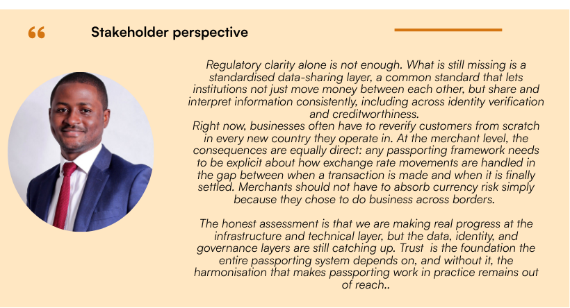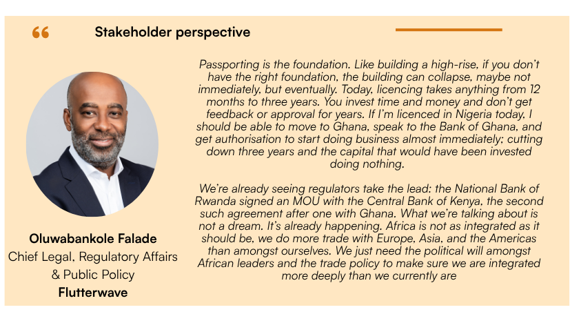 For operators who have navigated Africa’s licensing landscape firsthand, passporting is less a destination than a foundation. Flutterwave, which has expanded across multiple African markets without a passporting framework in place, sees the bilateral corridor model as the right sequencing.