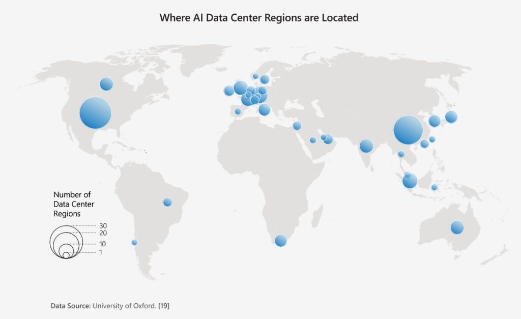 While this is good news for techno optimists, a more helpful way of tracking AI adoption is by measuring its diffusion. Microsoft recently released its AI Diffusion Report, which provides three complementary indices to assess AI progress: The AI Frontier Index, which tells us where the world’s leading AI models are being made, the Infrastructure Index, which measures how well countries build and scale AI, and the Diffusion Index, which measures how AI is being adopted—from individuals to governments.